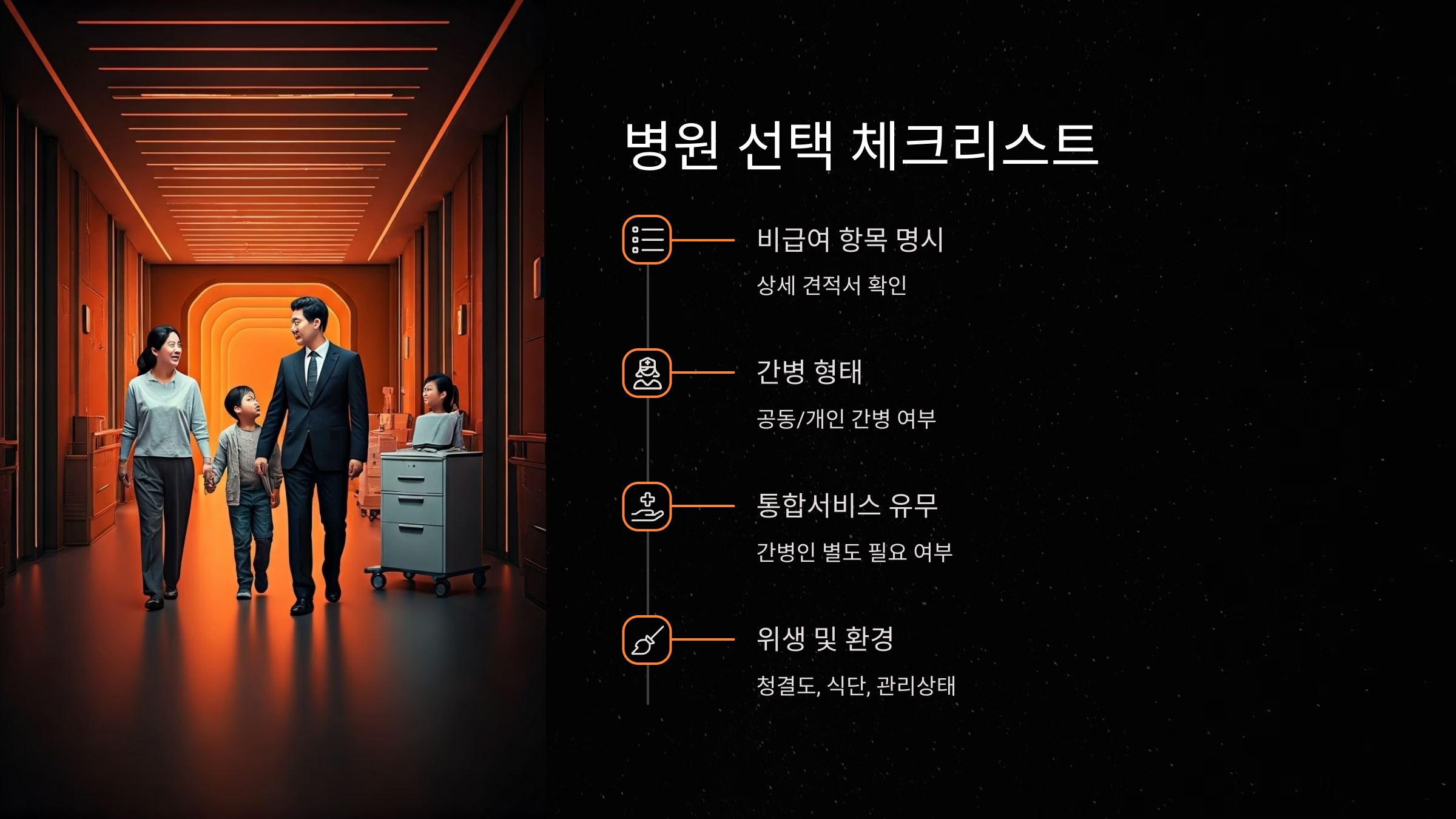 다만, 간병비와 같은 비급여 항목은 병원에 따라 차이가 크기 때문에 사전 확인이 필수입니다.