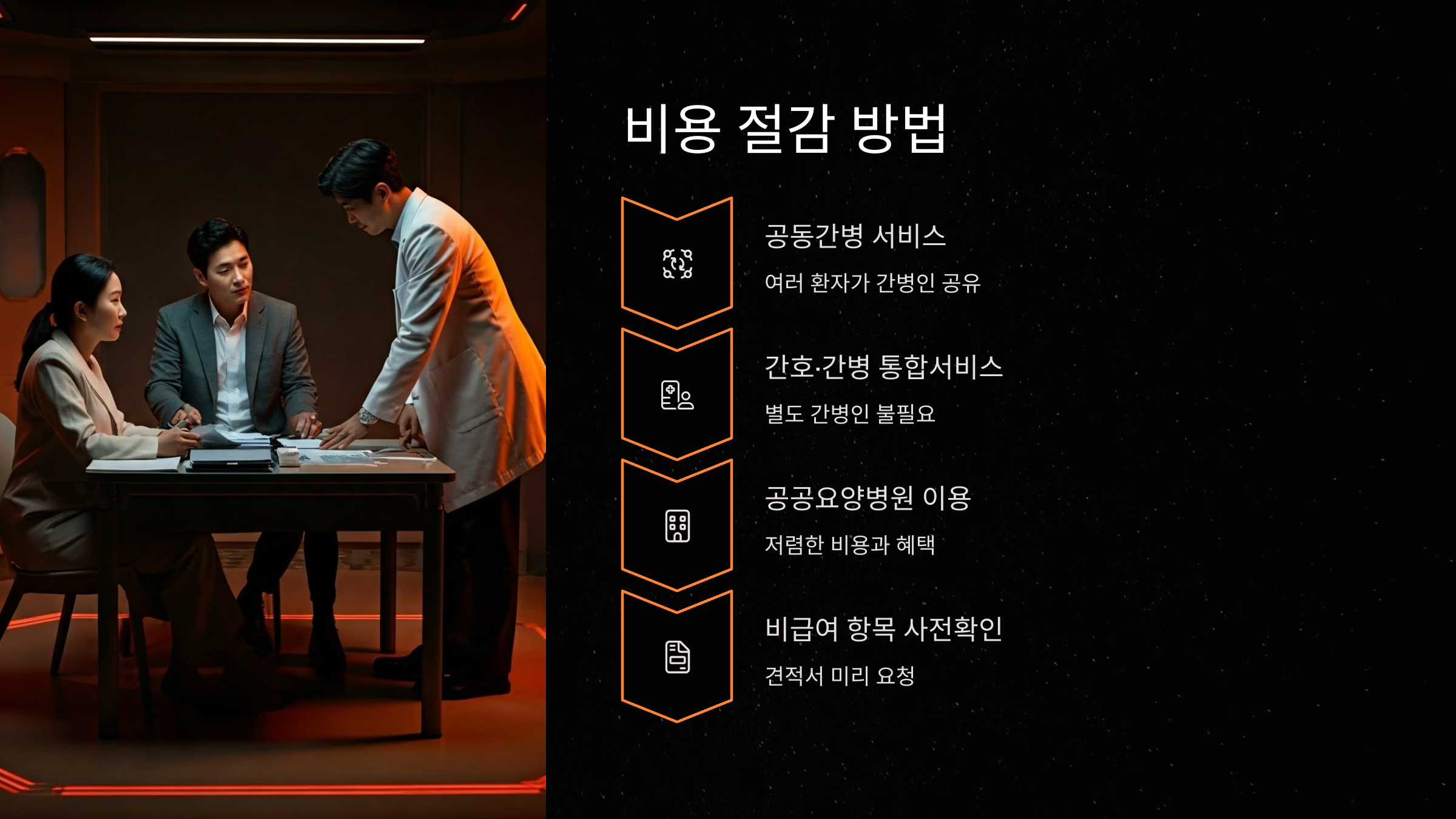 - 간병비 (공동간병 또는 간호·간병통합서비스로 절감 가능)