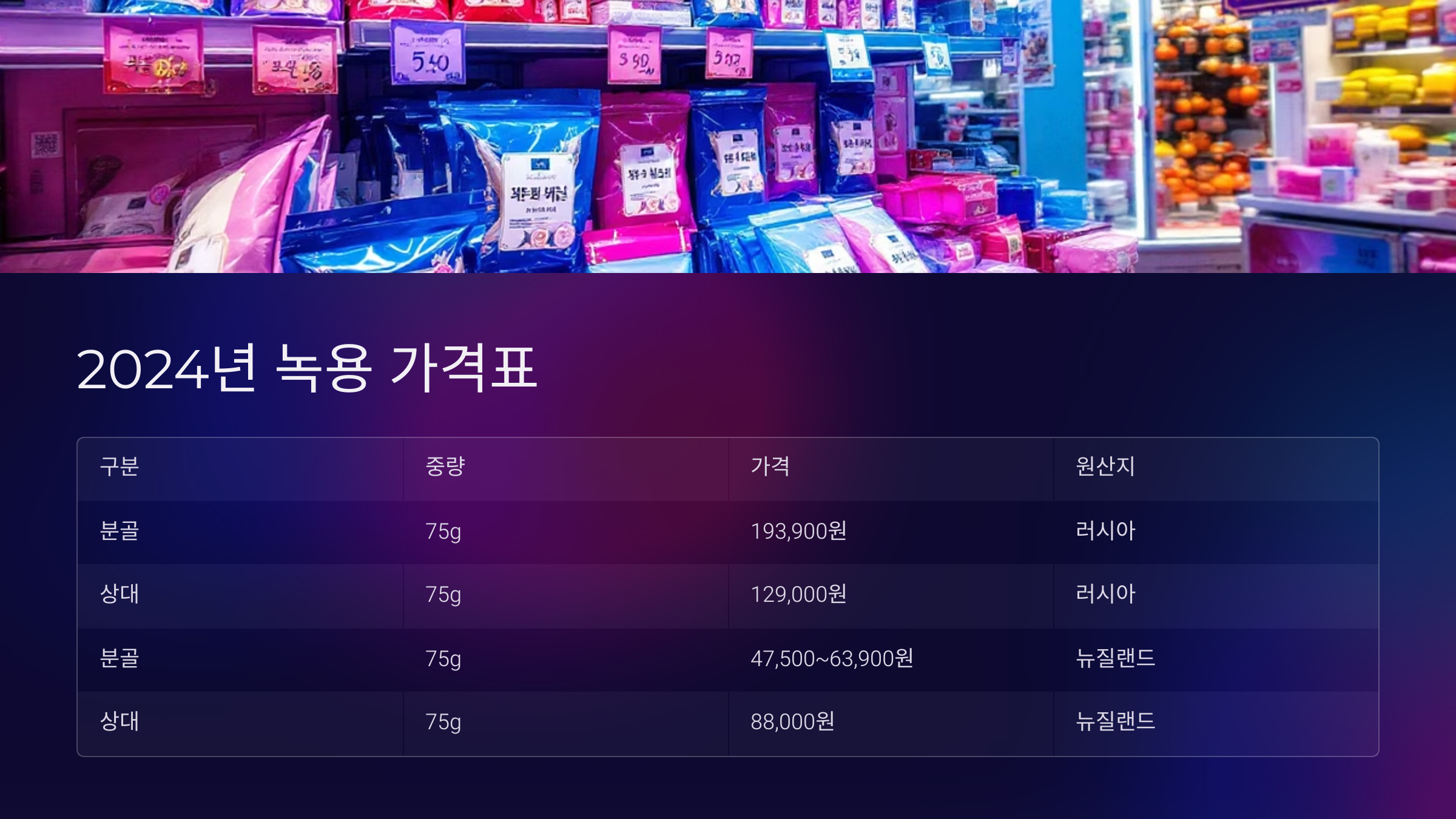 그래서 이번 포스트에서는 2024년 최신 녹용 가격 현황을 기준으로, 합리적인 선택을 도와드릴 수 있도록 깔끔하게 정리해드릴게요!