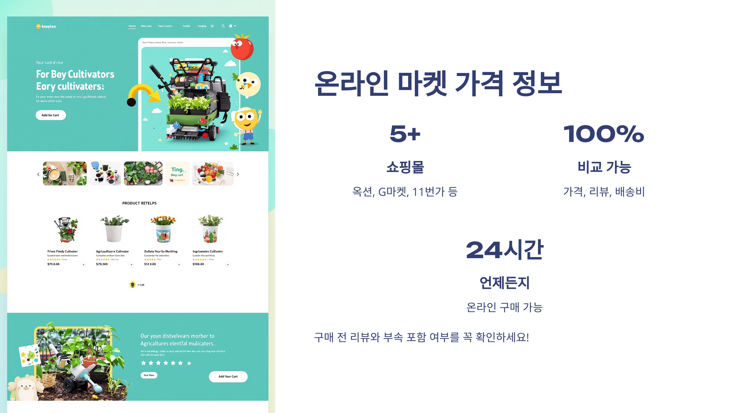 다양한 온라인 쇼핑몰에서도 농업용 관리기 가격과 기능을 한눈에 비교할 수 있어요.