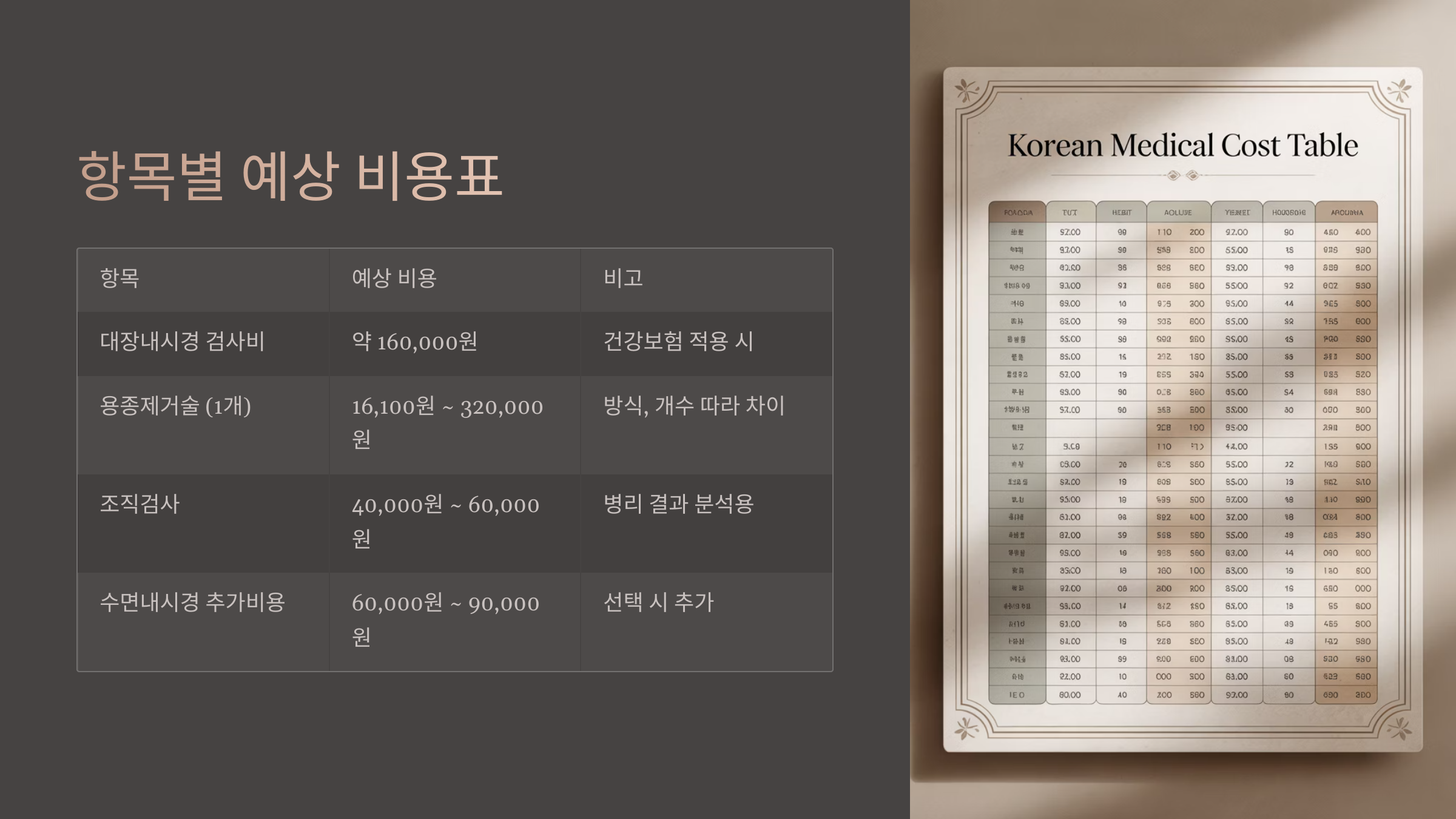 이런 궁금증들, 너무나 자연스러운 고민이에요. 의료비는 생각보다 민감한 부분이니까요.