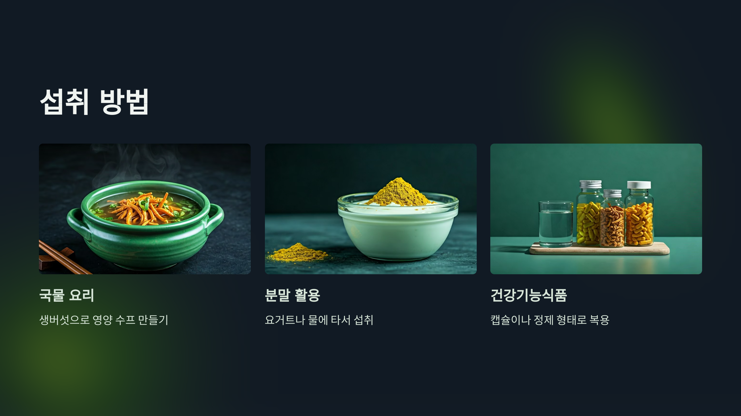 하지만 최근에는 인공 재배가 가능해지면서 건강기능식품, 음료, 분말 등 다양한 형태로 쉽게 접할 수 있게 되었답니다.