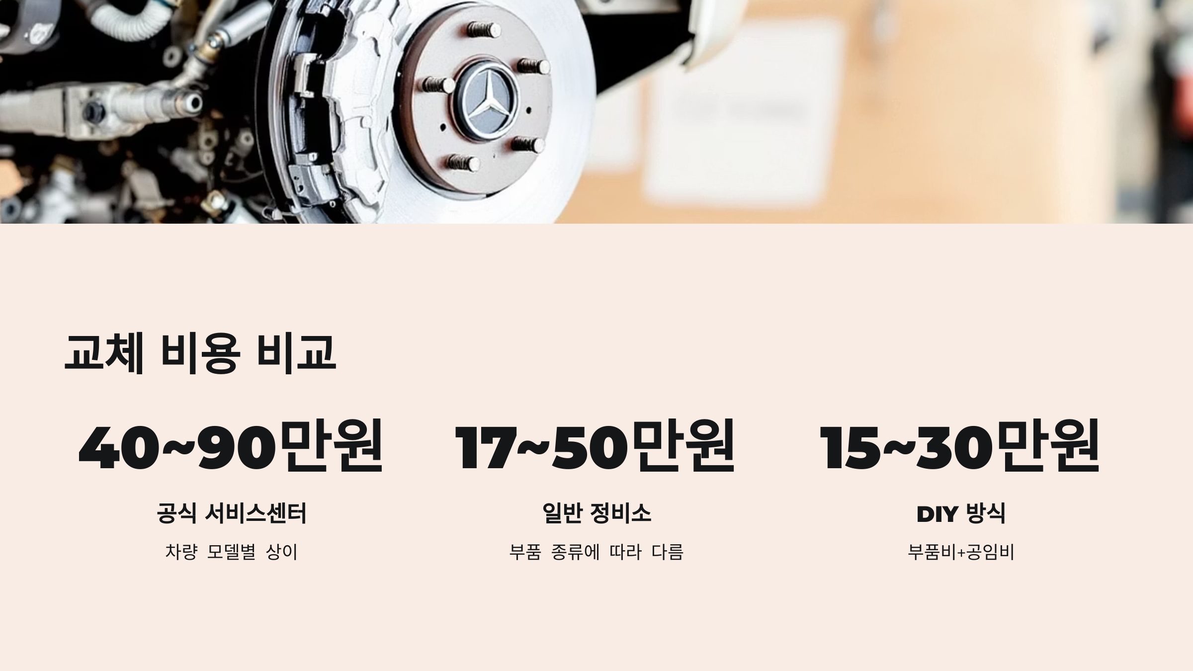 공식 센터는 40만 원 이상, 일반 정비소는 17만 원대부터 시작하며, DIY 시에는 15만 원대로도 가능해요.