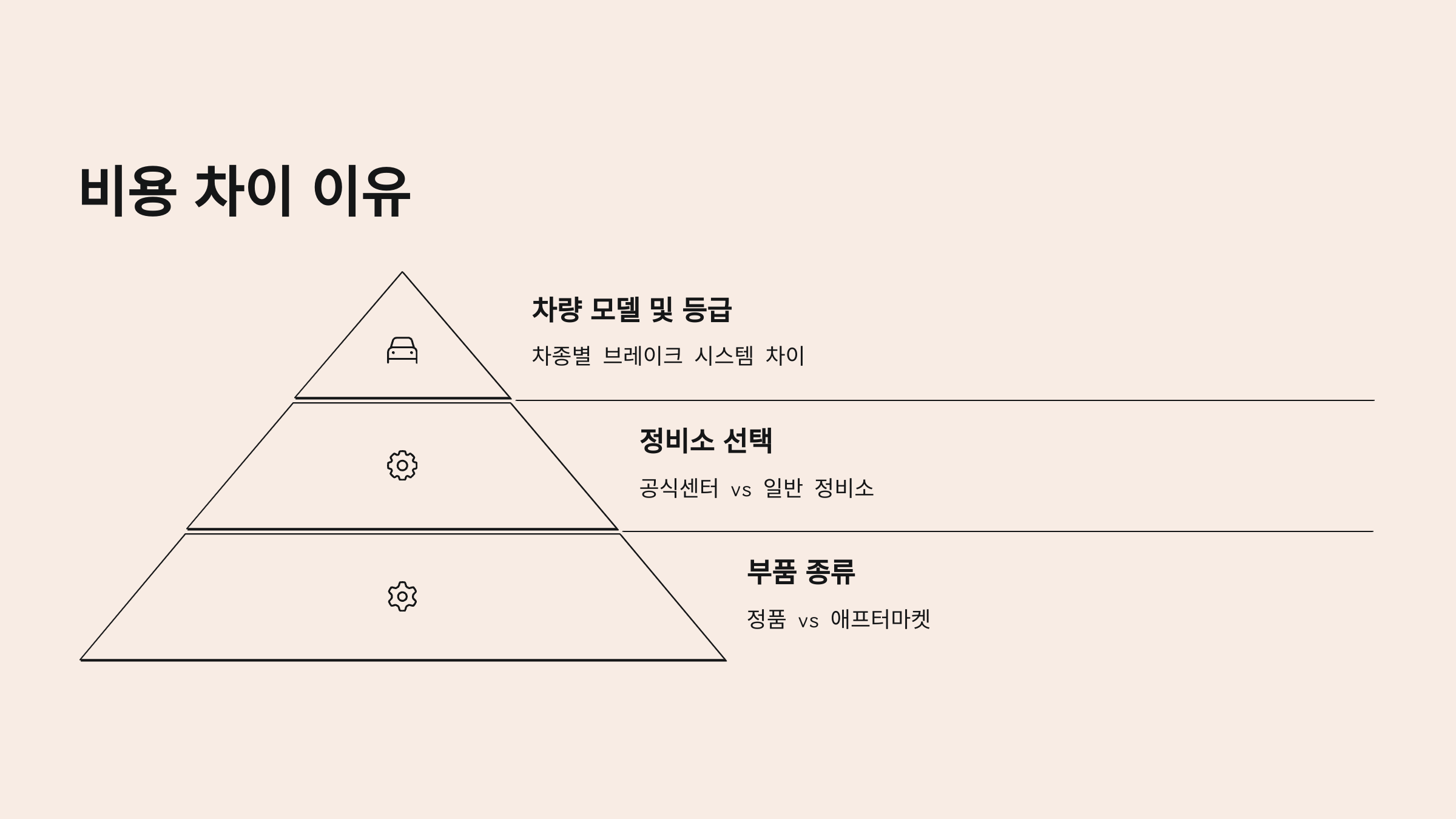 E클래스, S클래스, SUV 등 차종에 따라 브레이크 시스템의 크기나 구조가 다르기 때문에 부품 단가와 작업 난이도에 차이가 생겨요.