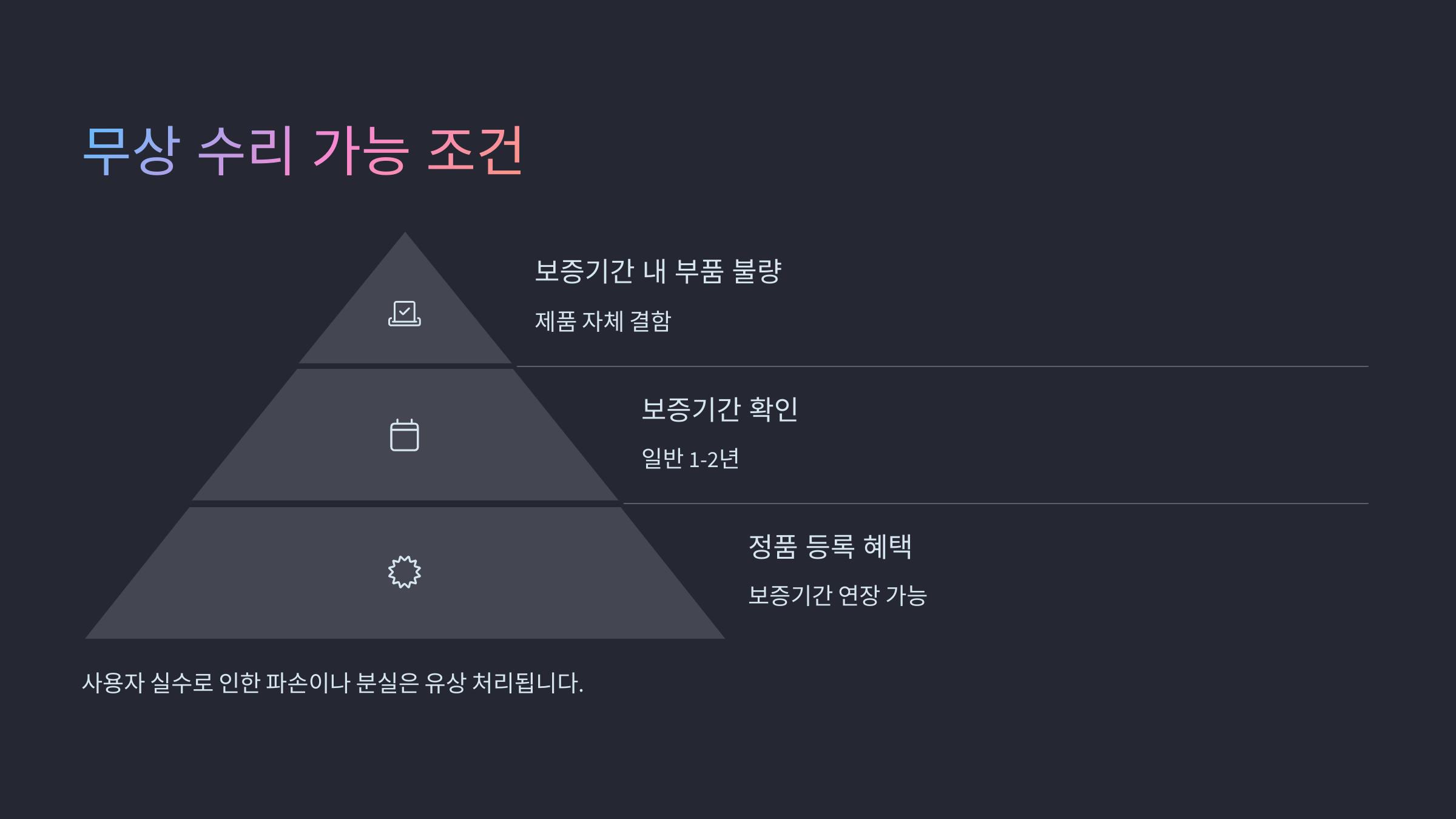 단, 사용자의 실수로 인한 파손이나 분실의 경우에는 유상 수리가 기본이에요.