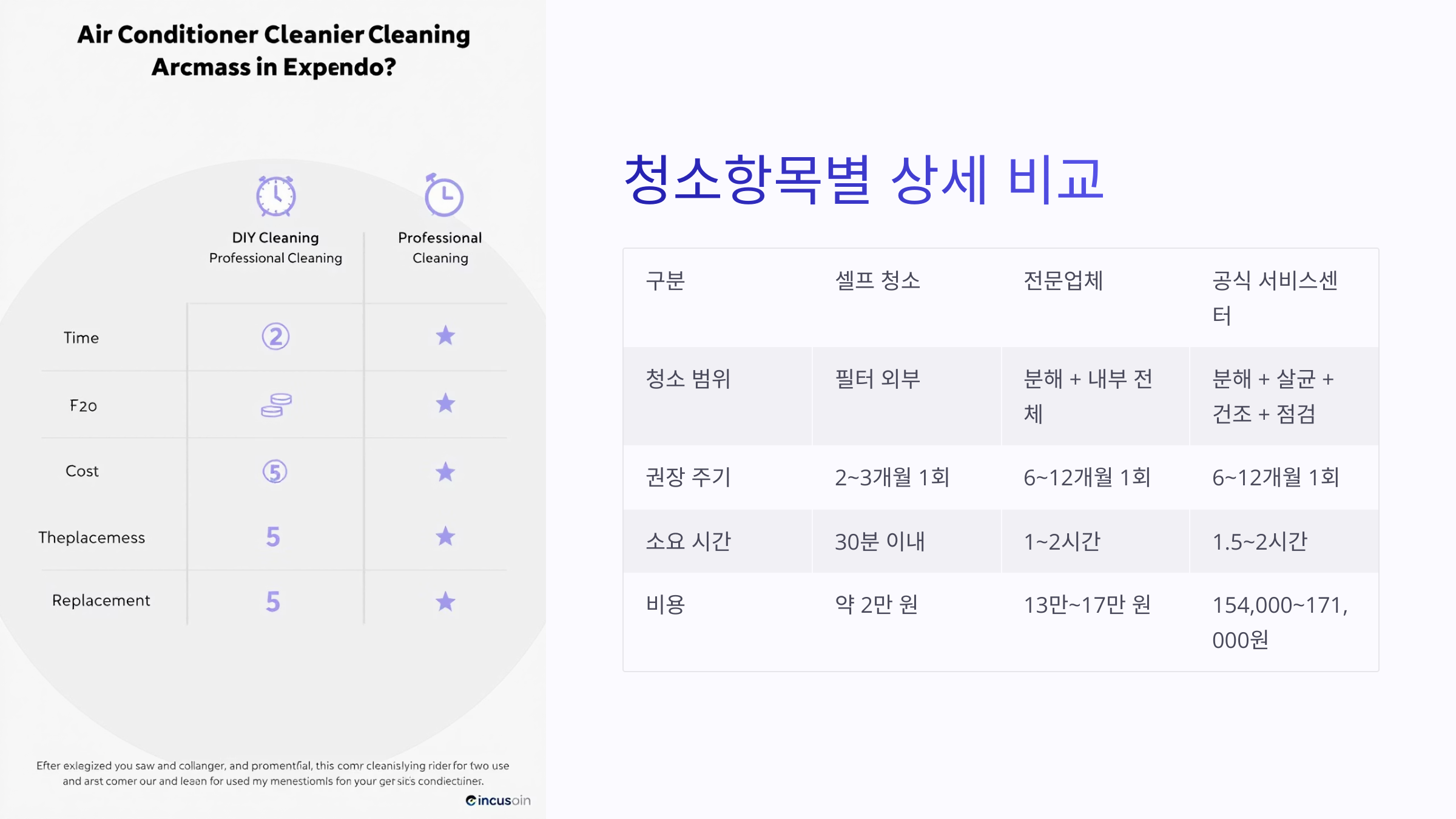 | 구분 | 셀프 청소 | 전문업체 | 공식 서비스센터 |