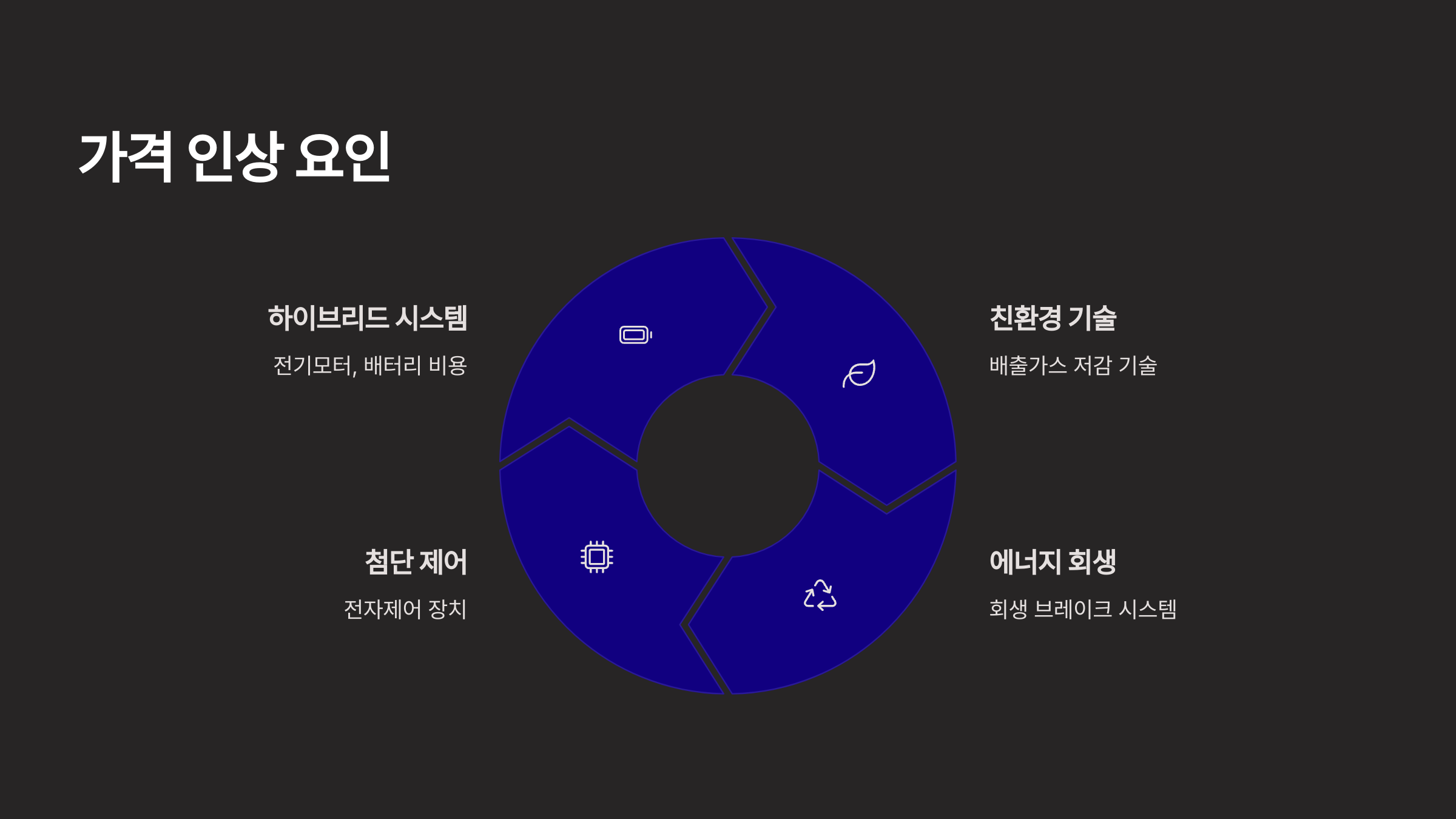 무엇보다 하이브리드 시스템의 핵심 부품인 전기모터, 배터리, 전자제어 장치 등의 원가가 차량 가격을 끌어올리는 주요 원인 중 하나예요.