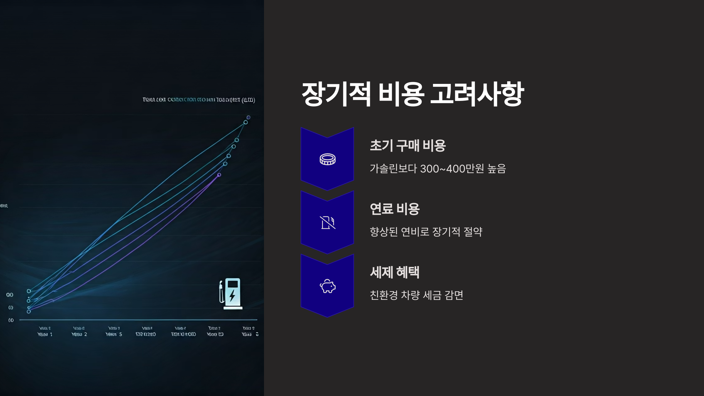 따라서 초기 구매 가격은 높지만, 연비와 유지비, 친환경 혜택 등을 종합적으로 고려하면 하이브리드의 경쟁력도 상당히 높다고 볼 수 있어요!