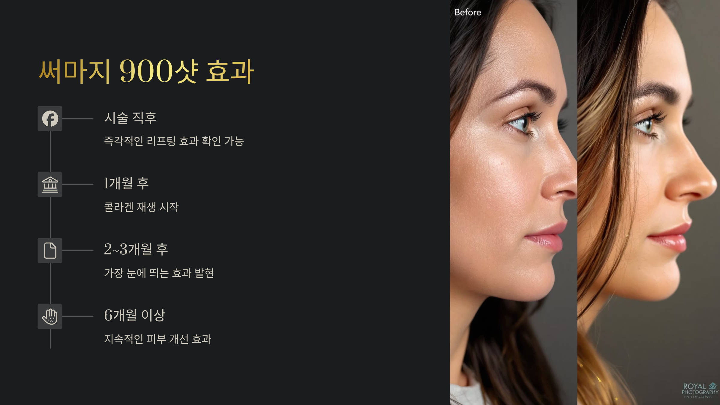 시술 직후에도 어느 정도 리프팅 효과를 확인할 수 있지만, 2~3개월 후부터 콜라겐 재생이 본격화되면서 가장 눈에 띄는 효과가 나타나요.