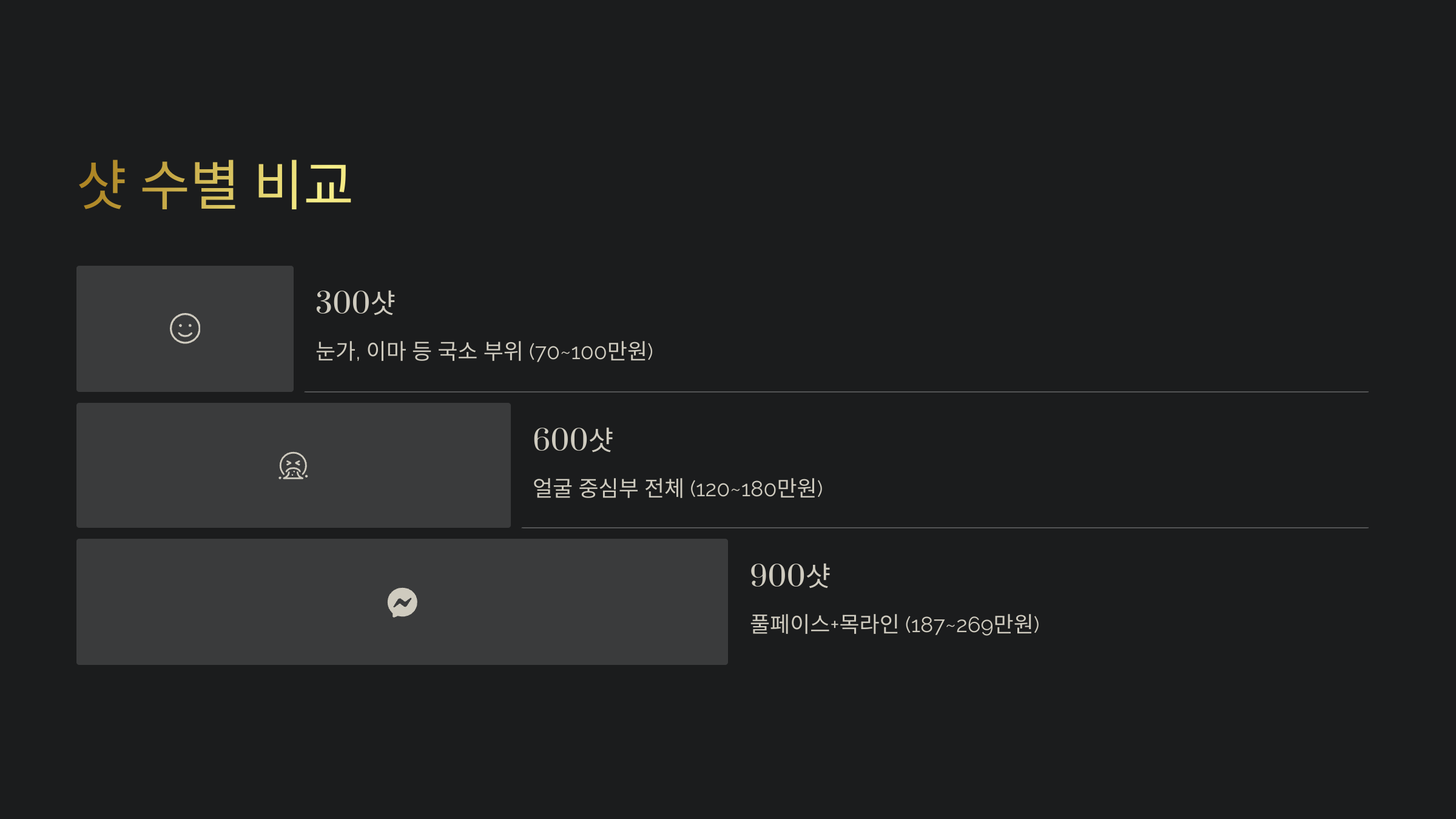 여기에 울쎄라나 슈링크 같은 타 리프팅 시술과 병행하거나, 프리미엄 패키지로 묶여서 시술받는 경우에는 3,000,000원을 넘는 곳도 종종 있어요.