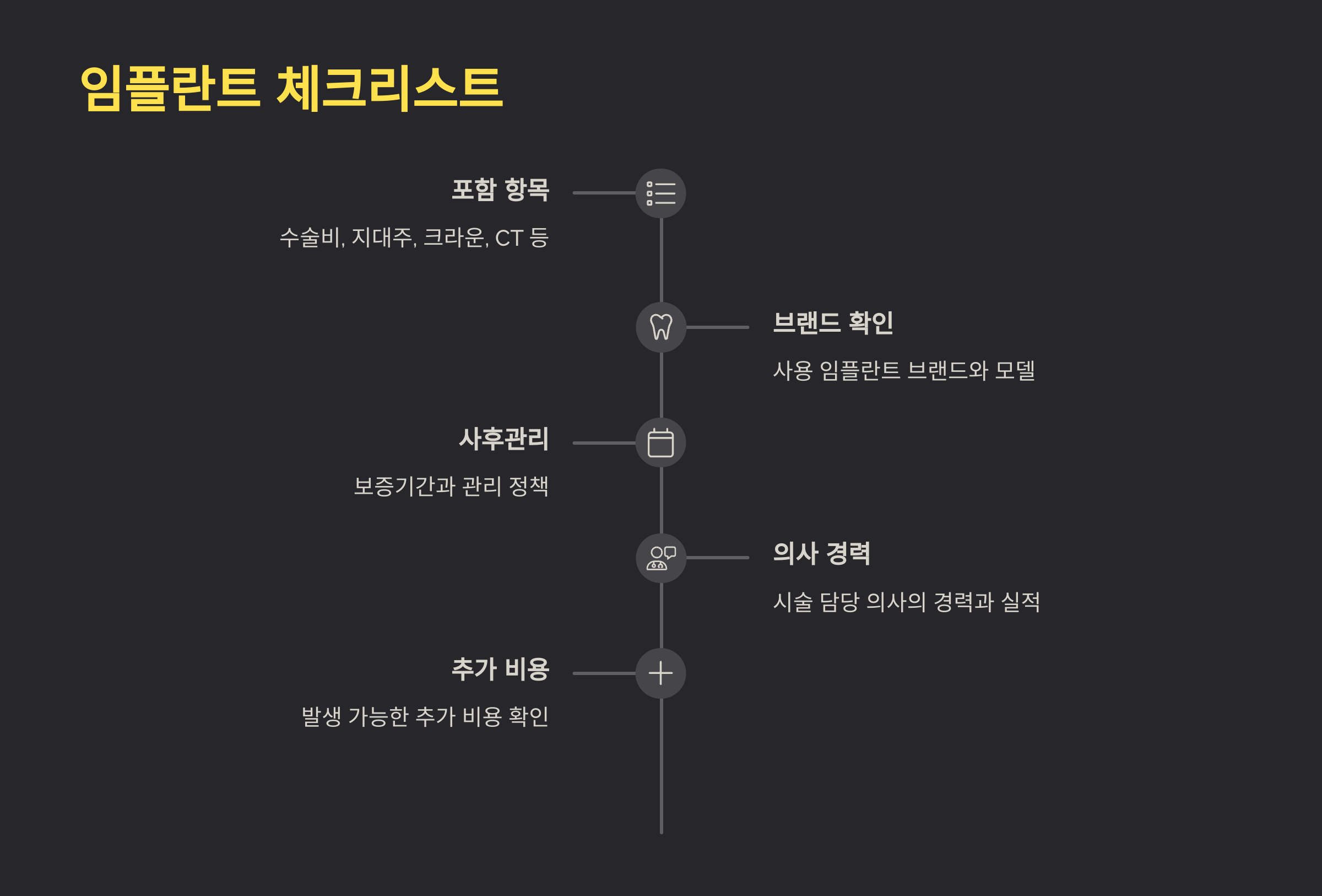 🔖 체크포인트 1: 시술에 포함되는 항목은 무엇인가요? (수술비, 지대주, 크라운, CT 등)