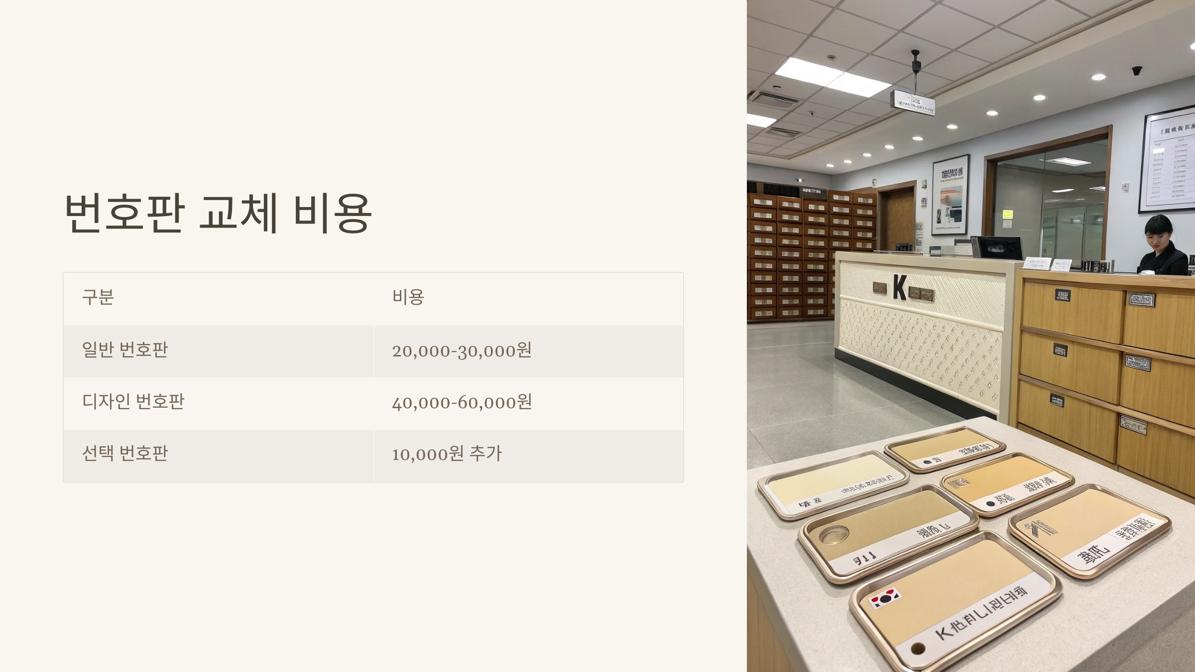 번호판 교체 비용은 평균적으로 약 2~3만 원 정도로 생각하시면 돼요.