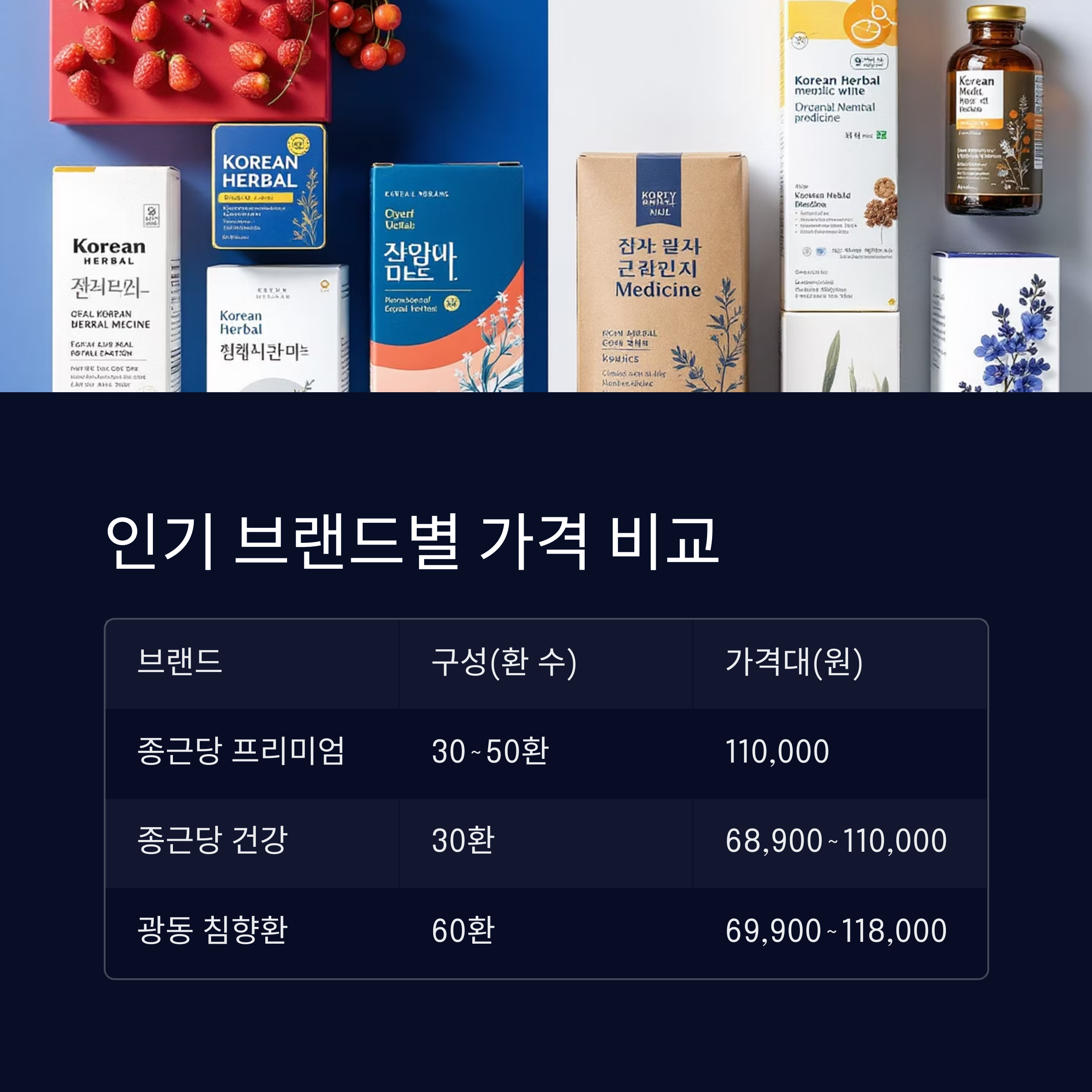 | 종근당 프리미엄 | 30~50환 | 110,000 | 공식몰 기준 |