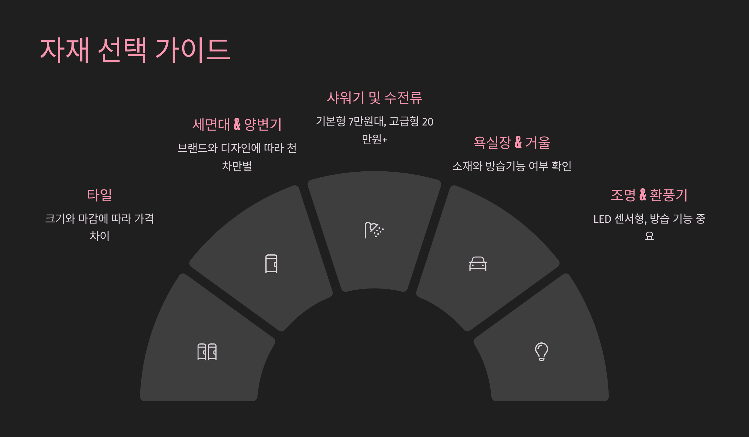 - 기타 악세서리 (욕실장, 거울, 환풍기, 조명 등): 10~30만 원