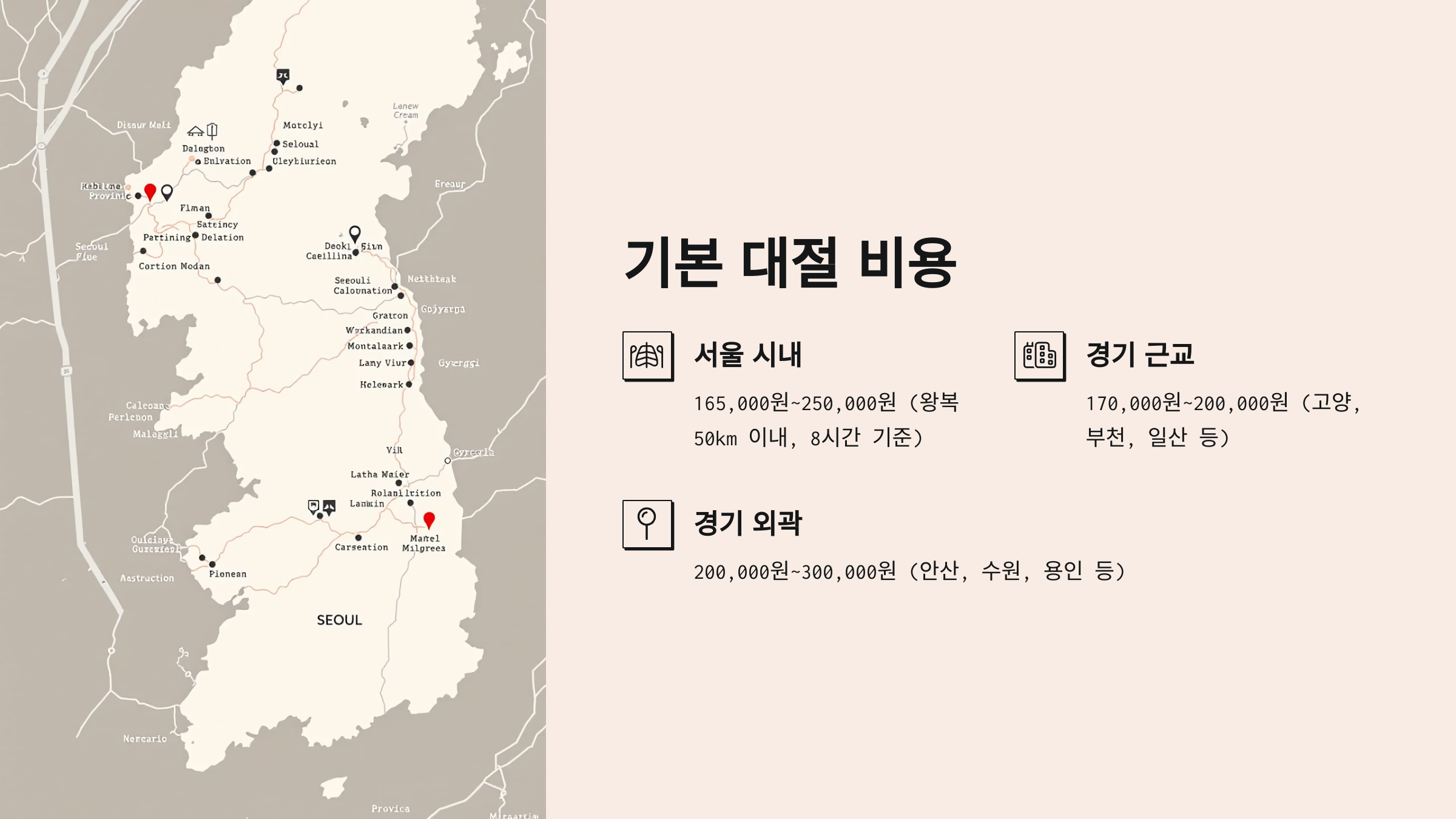 | 서울/경기권 단거리 | 165,000 ~ 300,000원 |