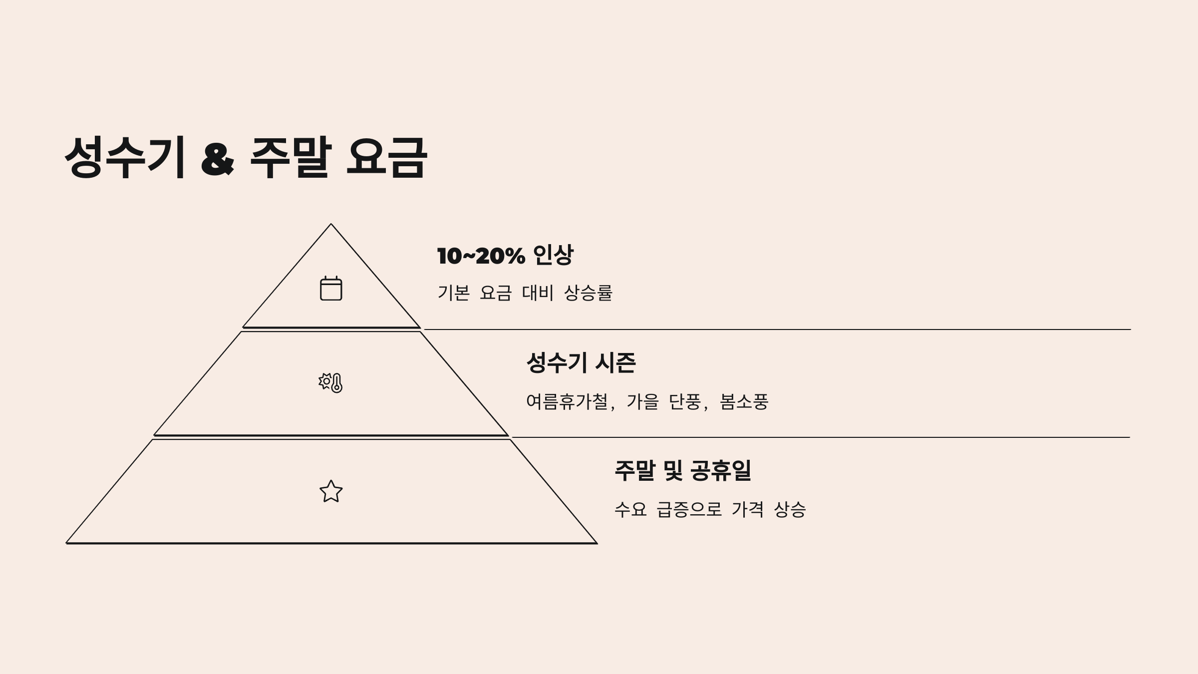 | 성수기/주말 | 요금 10~20% 인상 가능 |