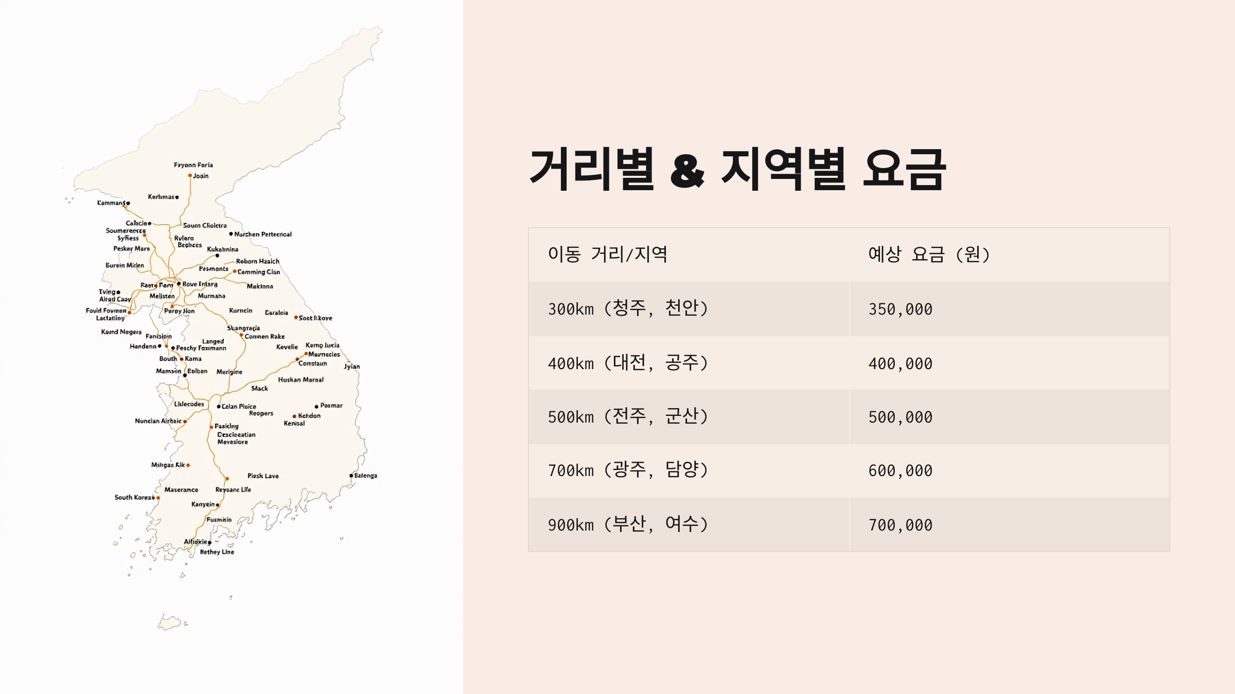 | 지방 장거리 | 350,000 ~ 700,000원 |