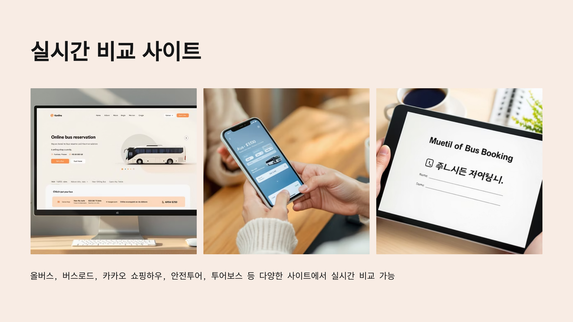 인터넷을 통해 실시간으로 여러 업체의 대절 비용을 비교하고 예약까지 가능한 사이트들이 있습니다.